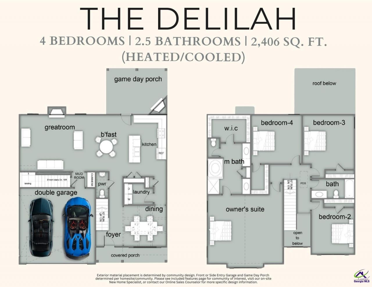Welcome to Clifton Ridge in Jones County, GA., where easy living meets fresh, stylish design in a setting that simply feels right. Introducing the Delilah B Floorplan, offering 2,406 sq. ft., 4 bedrooms, and 2.5 baths designed for the way life actually happens. From the moment you step into the striking two-story foyer, the home opens with warmth and intention. The Formal Dining Room features a coffered ceiling that adds just the right touch of character, while the light-filled Great Room invites you to relax and unwind beside the electric fireplace. At the heart of the home, the open-concept Kitchen delivers both function and style, complete with granite countertops, tiled backsplash, stainless steel appliances, and a spacious island that naturally becomes the gathering spot. The breakfast area keeps mornings simple and comfortable, while the pantry ensures everything has its place. Everyday living is made easier with a thoughtfully designed Owner's Entry featuring a signature drop zone. A convenient half bath and dedicated laundry room complete the main level. Upstairs, the Owner's Suite offers a peaceful escape with a vaulted ceiling, spa-like bath including a garden tub, separate shower, dual vanities, and a generous walk-in closet. Secondary bedrooms are bright, flexible, and ready to adapt to your needs. Durable luxury flooring runs throughout the main living areas, blending style with practicality. Step outside to enjoy the garden patio, ideal for winding down in the evenings or enjoying a quiet moment outdoors. Clifton Ridge delivers a relaxed, welcoming atmosphere with homes designed to fit your pace, where comfort, style, and everyday ease come together beautifully.