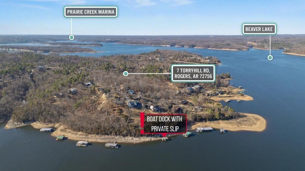 Beaver Lake home with a slip in a private dock! This beautifully updated, traditional home is situated on a .86-acre lot in Runnymede community with walking trail and lake access. Step inside to find an inviting floor plan featuring updated floors and roof replaced in 2025. On the main level is a cozy living room with a fireplace, a dedicated office, and a convenient half bath. The kitchen offers bar seating, eat-in area, and formal dining room ideal for entertaining. All bedrooms are upstairs, primary suite with its own fireplace, guest bedroom with in suite bath, and two rooms joined by jack-n-jill bath. A laundry chute adds convenience, while the finished walk-out basement provides a versatile three-level bonus area?perfect for a game room, home gym, or media space complete with half bath. Enjoy soaking up the outdoors on brand-new wooden decks, or take advantage of your private dock with a slip and lift. Seller offering $10k in buyer concessions, furniture*, and all appliances with an acceptable offer.