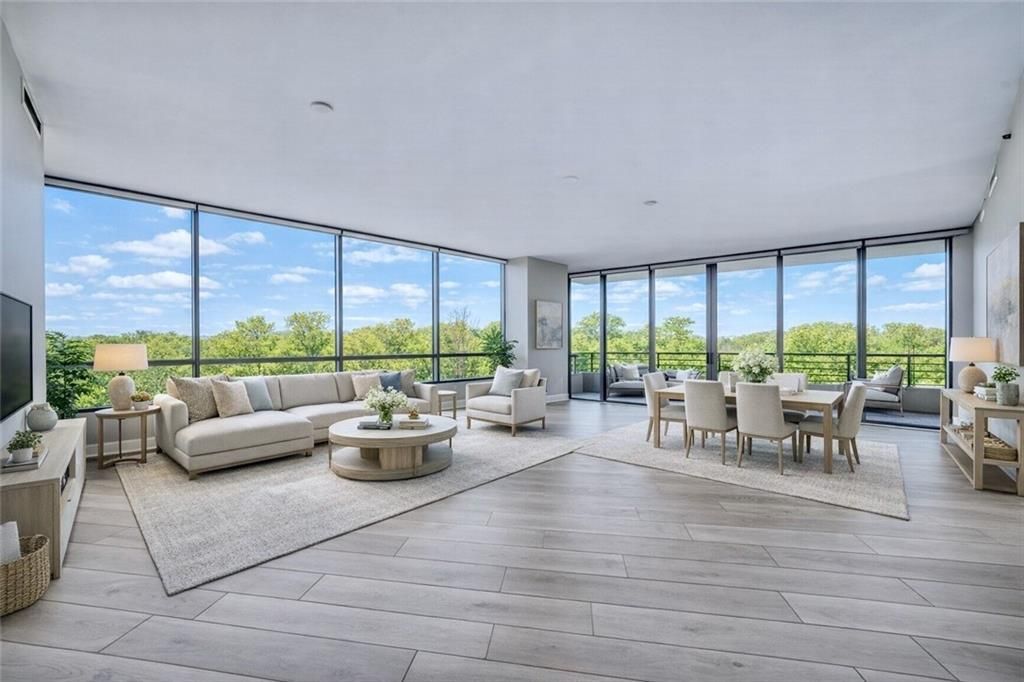Arguably one of the most sought-after and rarely available floor plans at Park Regency, Residence #1207 offers a refined, lock-and-leave lifestyle in the heart of Buckhead's most dynamic and walkable district. Elevated above the treetops, this residence pairs privacy and ease with immediate access to the area's premier shopping, dining, and daily conveniences. A dramatic wall of windows frames sweeping horizon views, filling the home with natural light and creating a calm, airy backdrop throughout the main living spaces. The primary living area is open and generously scaled, comfortably accommodating both defined living and dining. The kitchen connects seamlessly to a cozy breakfast room and opens to a charming private balcony with built-in planters. A second, expansive balcony spans the full width of the residence?accessible from both bedrooms and the living room?offering multiple vantage points for morning light and evening sunsets. The primary suite is spacious and serene, featuring a large walk-in closet and a well-appointed ensuite bath with double vanities, a soaking tub, and separate shower. The guest bedroom is equally versatile, ideal for visitors or a dedicated home office. Designed for effortless ownership, the home includes abundant interior storage, a separate storage unit, two assigned parking spaces, brand-new flooring and paint, and a newly installed HVAC system?delivering a truly turnkey experience. Park Regency is defined by discreet service and uncompromising security, supporting a true lock-and-leave lifestyle. Residents enjoy a grand lobby with 24-hour concierge and valet, gated entry, secured parking, and electronically monitored access staffed 24/7/365. A full-service onsite team?engineering, housekeeping, maintenance, and management?ensures daily ease whether in residence or away. Resort-level amenities include a heated pool and hot tub, fitness center with steam and sauna, rooftop terrace, climate-controlled wine cellar with assigned lockers, an event room with catering kitchen, two guest suites, a pet walk, and in-residence emergency call systems. Recent capital improvements include a new roof and updated elevators and lobby.A rare opportunity to own a turnkey residence that combines elevated design, full-service living, and the convenience of a walkable Buckhead lifestyle. Images have been virtually staged.
