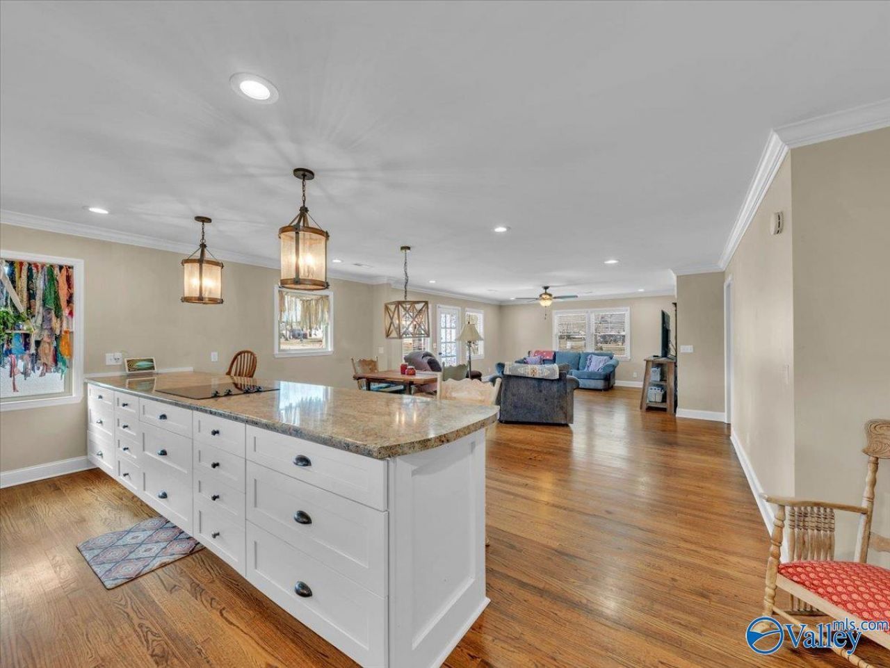 LIKE NEW! This 3 bedroom, 2 bath home underwent a complete down-to-the-studs renovation! From electrical and plumbing to HVAC, roof, insulation, drywall, fixtures, and finishes ? offering the feel of new construction. Beautiful hardwood floors and crown moldings run throughout, with an open living room flowing into the kitchen and dining area. The kitchen features new cabinets, stainless appliances, and a huge island bar seating six or more. Both baths have ceramic tile flooring, and a large laundry room provides shelving to use as a pantry. Enjoy the spacious covered back porch, privacy-fenced backyard, a 30x30 detached garage/workshop, plus 2 storage buildings!