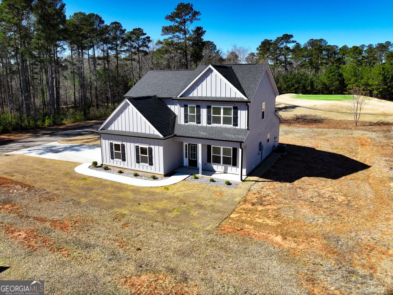 Dreaming of life on the golf course? Welcome to Riverside Estates, where this brand-new construction home overlooking the beautiful Point University Golf Course is now complete and move-in ready! Introducing The Chadwick Plan, a stunning Craftsman-style home offering approximately 2,234 square feet with 4 bedrooms and 2.5 baths. The inviting foyer opens into a spacious open-concept layout featuring the living room, kitchen, and dining area-perfect for everyday living and entertaining. The living room showcases a cozy gas log fireplace and durable LVT flooring. The well-appointed kitchen includes a large island, pantry, granite countertops, custom cabinetry, stove, dishwasher, and built-in microwave. The roomy primary suite is conveniently located on the main level and features a spa-like ensuite bath complete with a soaking tub, tiled shower, dual custom vanities, and granite countertops. A half bath is also located on the main level for guests. Upstairs, you'll find a versatile open playroom/loft area, three additional bedrooms, and a full bath-plus abundant closet and storage space throughout the home. Exterior features include a 2-car side-entry garage and a desirable corner lot location. Relax on the covered patio and enjoy peaceful golf course views as you watch the golfers play! Don't miss your opportunity to enjoy golf course living in this beautiful new home-schedule your showing today!