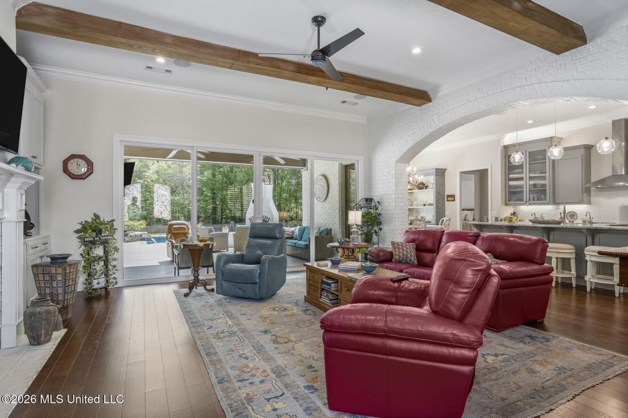Cul-de-Sac! Private Backyard! Pool! New Roof! This 4 bedroom, 3 bath home is located in gated Indian Creek subdivision of Flowood. Conveniently located to dining, shopping and schools. Beautifully maintained open floor plan with spacious rooms, neutral colors, stainless appliances, extra large island, walk-in pantry, and security system with cameras. Beamed ceiling in the living room with fireplace and sliding doors going out to the tiled outside covered porch with TV, new Blaze grill, and freestanding fireplace with new gas matchlight insert logs. Gorgeous pool and hot tub that can be operated through app on your phone. Fenced backyard with privacy, rainsed bed garden and whole home generator.