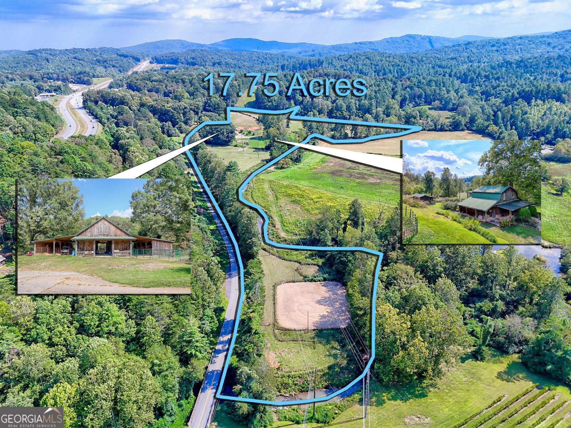 One Of A Kind...17.98 acres, 2500 ' Trout Waters, Rustic/Western custom 2 Bedroom 2 Bath Main House with 3 screened porches overlooking lush green pastures and mountain view. Additional 1 Bed, 1 Bath Tiny Home guest quarters with wrap around porch...Beautiful Firepit for entertaining. Large Barn with 4-8 horse capacity including wash rack, feed room, and tack room. All property is fenced and ready for livestock. Only minutes to Lake Rabun, close to Rabun County Schools and Recreation Department. Owner will consider some owner financing.