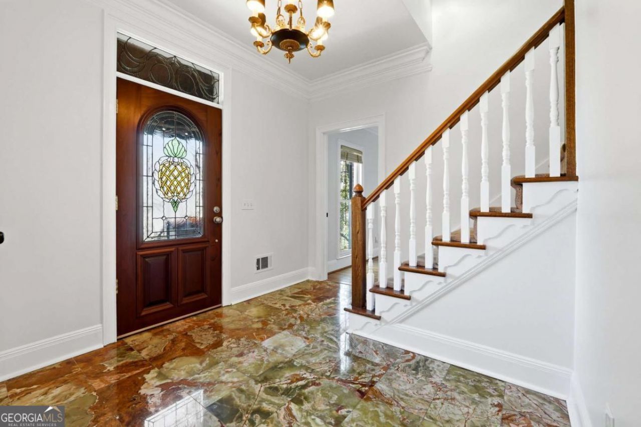 Tucked within the sought-after River Bluff community, this timeless four-sided brick estate offers a rare blend of refined craftsmanship, thoughtful updates, and exceptional lifestyle features in a beautifully private setting. From the moment you enter, the home presents with quiet sophistication. The foyer showcases rare marble floors and is flanked by light-filled formal spaces, creating an ideal flow for both everyday living and elevated entertaining. Expansive floor to ceiling windows draw the outdoors in, while freshly painted interiors, gorgeous hardwood floors, and designer light fixtures provide a clean, refreshed canvas throughout. The kitchen is both functional and beautifully appointed, featuring rare stone countertops, custom cabinetry, generous prep space, a warming drawer, and doors that allow it to live as open-concept or closed off, depending on preference and occasion. A large main-level laundry room, functioning as a mudroom with exterior access and a convenient sink, adds everyday practicality. Just beyond, the formal dining room with judge's paneling and floor-to-ceiling windows offers a joyful setting for gatherings and connects seamlessly to the kitchen. One of the home's most striking spaces is the richly appointed mahogany-clad club room, wrapped floor-to-ceiling in beautiful wood that immediately reads as luxury. A hidden wet bar is tucked within this space, ideal for entertaining or simply enjoying the home. The adjoining sunroom, finished with brand new LVP flooring, overlooks the backyard water features and lush landscape-a peaceful spot where deer are frequently seen. Upstairs, five bedrooms are thoughtfully arranged for comfort and privacy, all served by high-end plush carpet that reinforces the quiet, retreat-like feel of the second floor. The light, neutral palette underfoot offers an elegant backdrop and an easy starting point for future customization. The primary suite is a true retreat, with a spacious bedroom, custom California Closets including an additional closet for folded items, and a generous bath featuring dual vanities, an extra bank of cabinetry to ease getting ready, a Jacuzzi tub, walk-in tiled shower, and private water closet. Each of the four secondary bedrooms includes California Closet systems and brand new ceiling fans, and they each share one of two Jack-and-Jill bathrooms for the utmost in convenience and livability. The terrace level adds a significant extension of living space. Here you'll find an expansive room that can act as a bedroom with ensuite bath and closet, a separate living area, and a sink-and-cabinet zone that could easily be converted into a full kitchen. This level is ideal as an in-law or guest suite, kids' play space, or home theater, with an additional large unfinished storage area. A professionally designed wine cellar-one of only two in Atlanta by this designer-with capacity for approximately 5,000 bottles serves as a true collector's showpiece, combining function and visual impact rarely found in residential properties. Outdoor living is equally compelling. The expansive deck-recently rebuilt and refreshed-pairs with a huge covered porch and additional uncovered porch, together creating multiple zones for dining, lounging, and entertaining. Raised flower beds are built in and ready for spring planting. Three beautiful water features anchor the landscaped backyard, enhancing the tranquil ambiance and complementing the surrounding natural setting. The entire fron