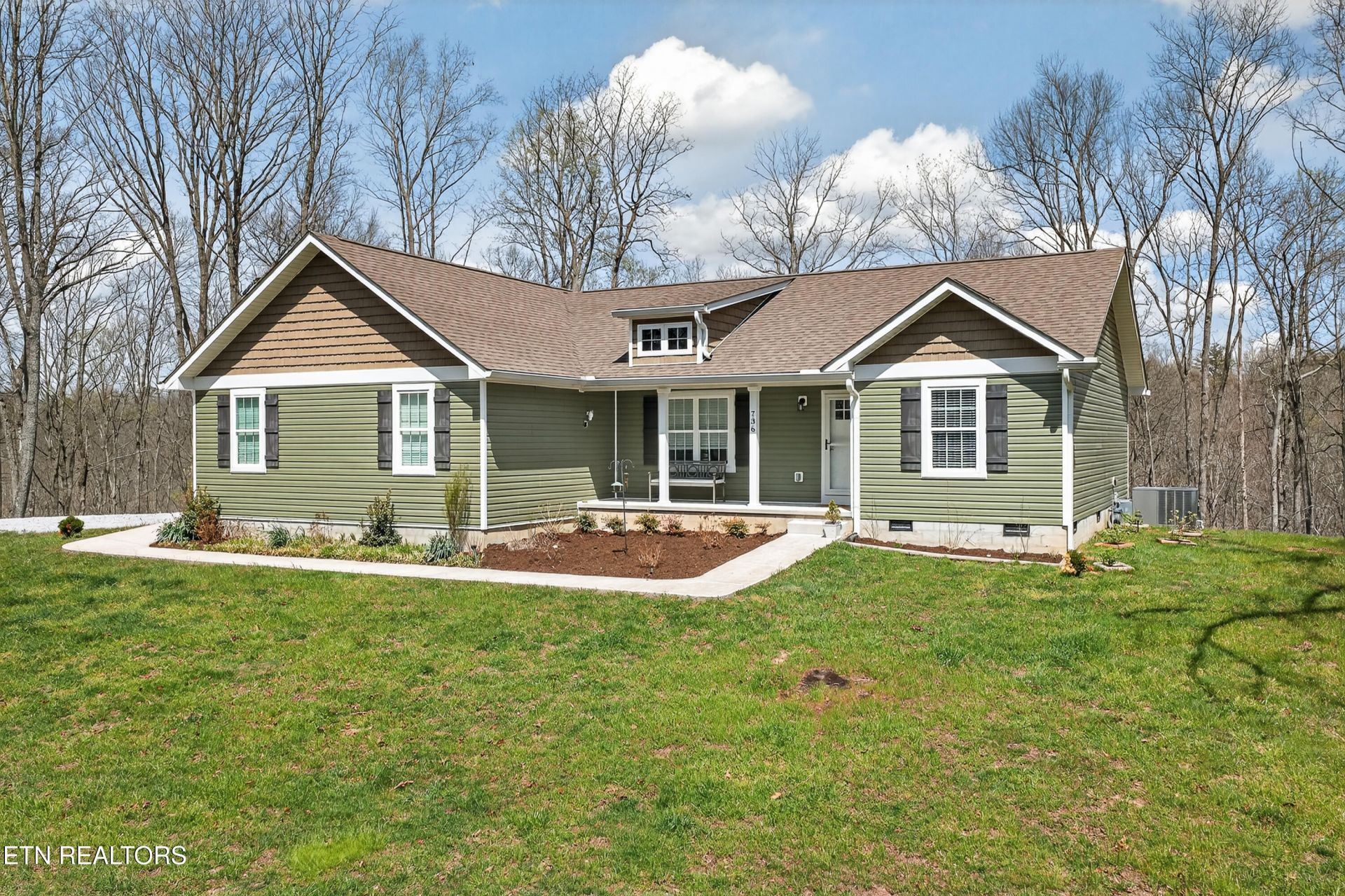 This beautifully maintained home, built in 2021, is waiting for you to move in and infuse it with your unique style. It features three bedrooms and two full baths, offering over 1,500 square feet of comfortable living space. The generous living area flows effortlessly into the dining and kitchen spaces, which include a large island, plenty of shaker-style soft-close cabinets, and elegant granite countertops. The home comes equipped with stainless-steel appliances, washer and dryer. Conveniently located off the kitchen, the back door provides access to a spacious deck that offers stunning views of the 2.2-acre property. The expansive primary bedroom suite offers plenty of space for a king-size bed and includes a walk-in closet. The luxurious bath features double sinks, a walk-in shower, and a linen closet for added convenience. Additional amenities include recessed lighting, hardwood floors, a Honeywell electronic thermostat and alarm system, and a two-car garage. This exceptional property is situated in the delightful neighborhood of Cumberland Cove, where you can experience a warm and welcoming community. Enjoy private parks, stunning bluff views, and miles of hiking trails. Participate in community events while relishing tranquility in spacious lots ranging from 1+ to 4+ acres. Discover the beauty of nature at its finest! All information provided is deemed reliable but is not guaranteed.