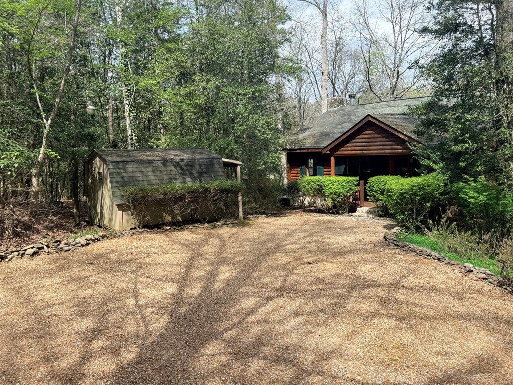 Step inside this True Log Home featuring 4 Bedrooms with 3 Full Bathrooms. Tucked away in the heart of Blairsville, this authentic log cabin retreat offers the perfect blend of rustic charm & mountain serenity. Situated on 3.78 private acres with over 200 feet of frontage on Dooley Creek, this stunning property invites you to experience the peaceful sounds of flowing water and the beauty of North Georgia living. The Grand living room with soaring beamed ceilings and a dramatic floor-to-ceiling stacked stone wood-burning fireplace, creates a warm and inviting centerpiece. The home flows effortlessly into a separate dining area and a beautifully appointed kitchen complete with elegant marble countertops. The main level offers a spacious Primary En Suite, along with a Guest Suite featuring private access to a second full bathroom, ideal for visitors. A dedicated laundry room is also located on this level for added ease. Downstairs, the fully finished lower level expands your living space with a cozy conversation den, flexible office area, two additional generously sized bedrooms (one with a gas log, stoned Fireplace, and a spa-like full bathroom?perfect for accommodating family and guests. Walk out directly to your backyard oasis, where winding paths lead you to the tranquil creekside setting. Whether you're seeking a full-time residence, mountain getaway, or investment opportunity, this real log cabin delivers unmatched charm and value. Priced to sell?don't miss your opportunity to own a slice of North Georgia paradise!