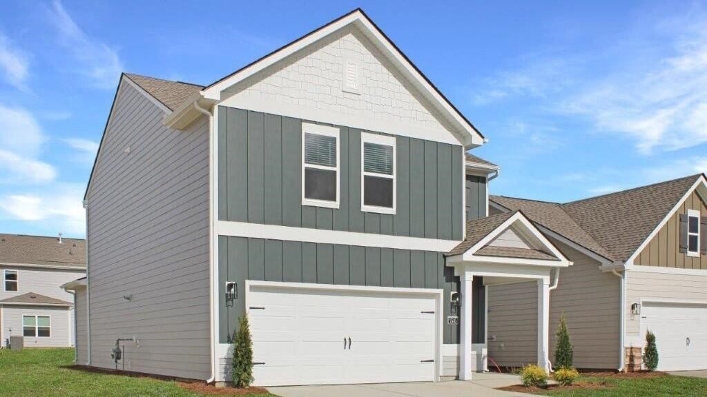 The Edmon plan available at The Cove at Thrasher Landing in Hixson, TN is a charming floorplan suited for any stage in life. The foyer opens to an expansive open concept living area and kitchen. The kitchen includes an island with countertop seating, a pantry, and a breakfast nook. The living and kitchen areas overlook an outdoor patio. Upstairs are four spacious bedrooms and two full bathrooms. The primary bedroom features a walk-in closet and en suite bathroom. The upstairs also features a laundry room.