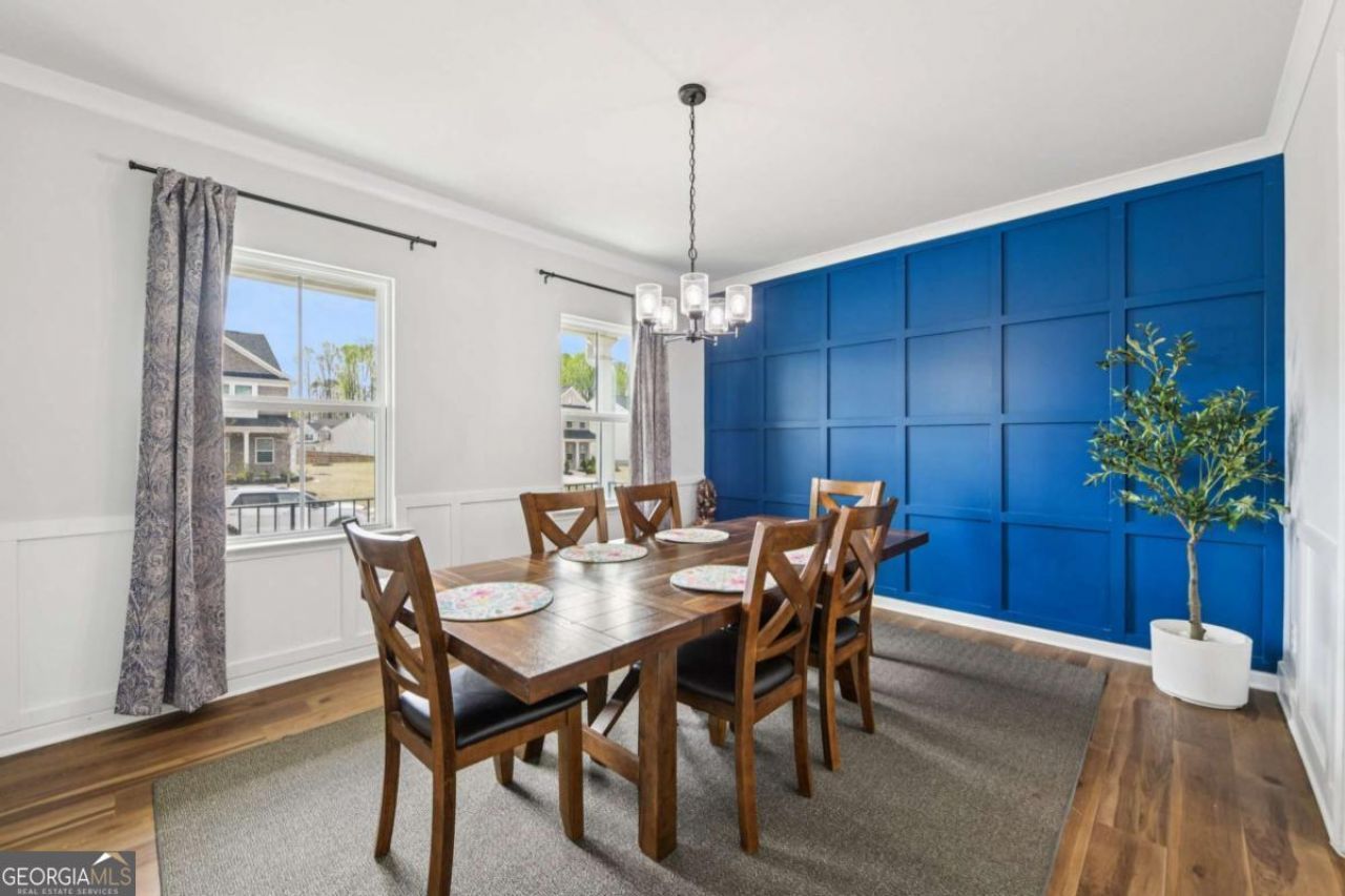 Experience the perfect blend of modern elegance and sophisticated design in this stunning 2024-built home in Dawsonville. This five-bedroom, three-bathroom home features a bright, open-concept floorplan highlighted by a custom built-in entertainment center, a formal dining room with a designer accent wall, and a gourmet kitchen equipped with a large island and walk-in pantry. The main level also has a bedroom and full bathroom, perfect for guests or multi-generational living. The second level features a spacious primary suite complete with elegant trey ceilings, a large walk-in closet, and a luxurious walk-in shower. Three secondary bedrooms, a full hall bath and an expansive open loft complete the top floor. Enjoy peaceful mornings on the back deck or patio overlooking a serene pasture. The full unfinished basement with high ceilings provides endless possibilities for future expansion, while the smart irrigation system and neighborhood pool add effortless luxury. Located just minutes from GA-400, North Georgia Premium Outlets, and Lake Lanier, this home offers unparalleled access to premier shopping and outdoor recreation.