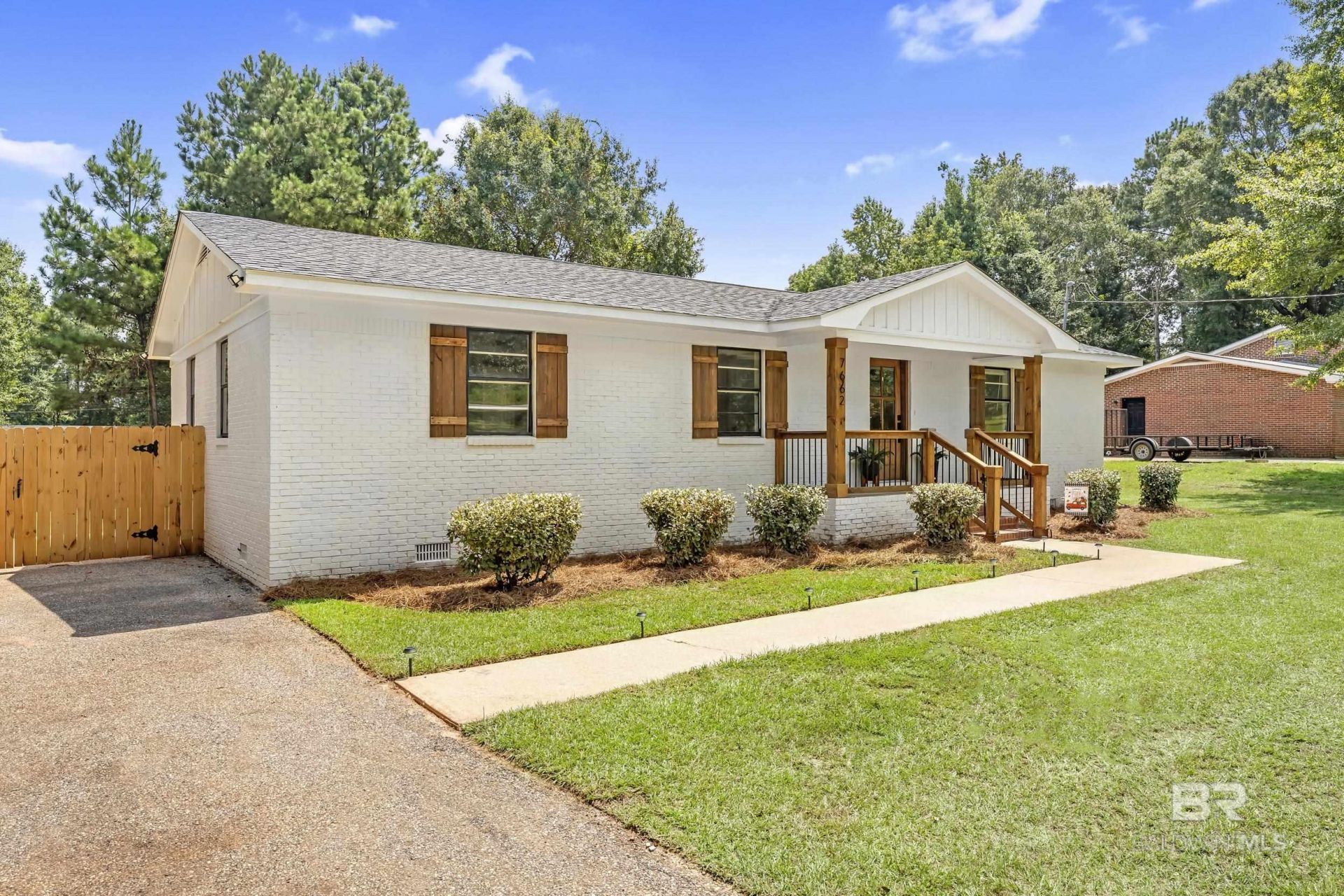 LOCATION, LOCATION, LOCATION! One mile from 158 and 10 minutes from Saraland!! This beautifully renovated 3 bedroom 2 bath ranch style home combines timeless charm with modern upgrades. Step inside to an open floor plan featuring a stunning wood beam centerpiece, creating warmth and character throughout the main living space. The kitchen is a showstopper with all-new appliances, sleek finishes, and ample counter space, making it perfect for both everyday living and entertaining. Both bathrooms boast gorgeous tile showers, adding a touch of luxury to your daily routine. Additional upgrades include a brand-new roof for peace of mind and lasting value. With its inviting design and thoughtful updates, this home is move-in ready and waiting for its new owners! Buyer to verify all information during due diligence.