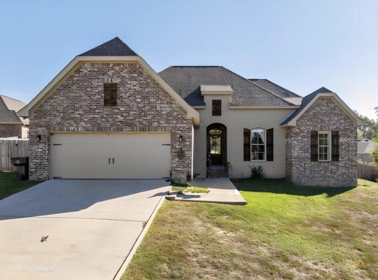 Like-new Oak Grove home built in 2022! This spacious 4-bedroom, 2-bath home also includes a dedicated office!Inside you'll find an open layout with crown molding, recessed lighting, and durable luxury vinyl plank flooring throughout. The kitchen offers granite countertops, subway tile backsplash, stainless steel appliances, and a motion-sensor faucet over a deep double-basin sink. The powered island includes a dishwasher and additional outlets for convenience. A handy pantry sits right off the garage perfect for unloading groceries and still has room for extra shelving if desired.The living and dining areas are lined with triple windows overlooking the private fenced backyard. A full glass door leads to the partially covered back patio, with steps down into the large fenced yard.The primary suite offers great space for larger furniture and a peaceful setup with windows on either side of the bed. The ensuite bath features a soaking tub with subway tile surround and etched-glass privacy window, a walk-in fiberglass shower with rain-head fixture and built-in seat, and a generous walk-in closet with shelving.The laundry room is oversized and includes a folding counter, extra storage space, and room for a second refrigerator or freezer. Additional details include an upgraded sewer pump, double-gate access with a metal frame, and attic with pull-down access.Schedule your private viewing today!