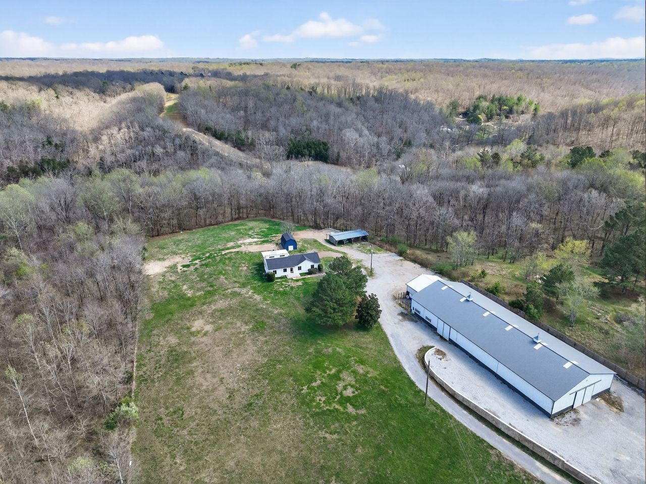 Welcome to your private countryside retreat just minutes from the city. Conveniently located approx. 5 minutes from the interstate and approx. 15 minutes to downtown Nashville, this 8.75-acre property offers the perfect blend of accessibility & peaceful rural living.Nestled among rolling hills with a mix of open pasture, wooded areas, & a serene creek behind the property, this cozy cabin-like home features +2,500 SF of living space with 3 bedrooms, 2 full bathrooms, & a basement bonus room complete with a closet/office & additional storage. The warm wood interior & wood-burning fireplace create an inviting, rustic atmosphere, with recent updates-including freshly painted interior & exterior & newly remodeled tile bathrooms-provide a clean, modern touch.Step outside to enjoy the newly built back deck overlooking the scenic landscape, ideal for relaxing or entertaining. This property is truly set apart by its functional layout & improvements. The expansive +10,500 SF warehouse-like space offers exceptional versatility-ideal for home-based business operations, workshop or fabrication space, or agricultural use. Perfect for equipment, fleet, RV/boat, or collector storage. The flexible layout also lends itself to creative studio space or potential income-producing opportunities (all uses subject to zoning). The building has commercial-grade concrete floors & is surrounded by a professionally installed commercial grade retaining wall & recently installed privacy fence. The attached 2-car rear facing garage, 2-story storage shed, & 4-bay open-face shed offer ample room for storage, equipment, vehicles, or livestock.Whether you're in search of a serene country retreat, a property with plenty of room to grow, or the perfect balance of rural charm & city convenience, this home delivers. This rare offering combines comfortable residential living with expansive, functional space.