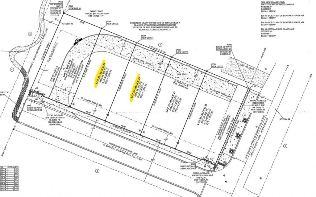 Ready for your development. 2 building lots, driveway and sidewalk already paved. Located directly behind Crystal Bridges and a 1/2 mile to the Downtown Square. Hop on the Zeppelin multi-use trail right from the property to ride the Slaughter Pen trail system and beyond. Recorded plat and covenants attached in MLS - This listing is for Lots 34 and 35 (32/33 currently being developed).