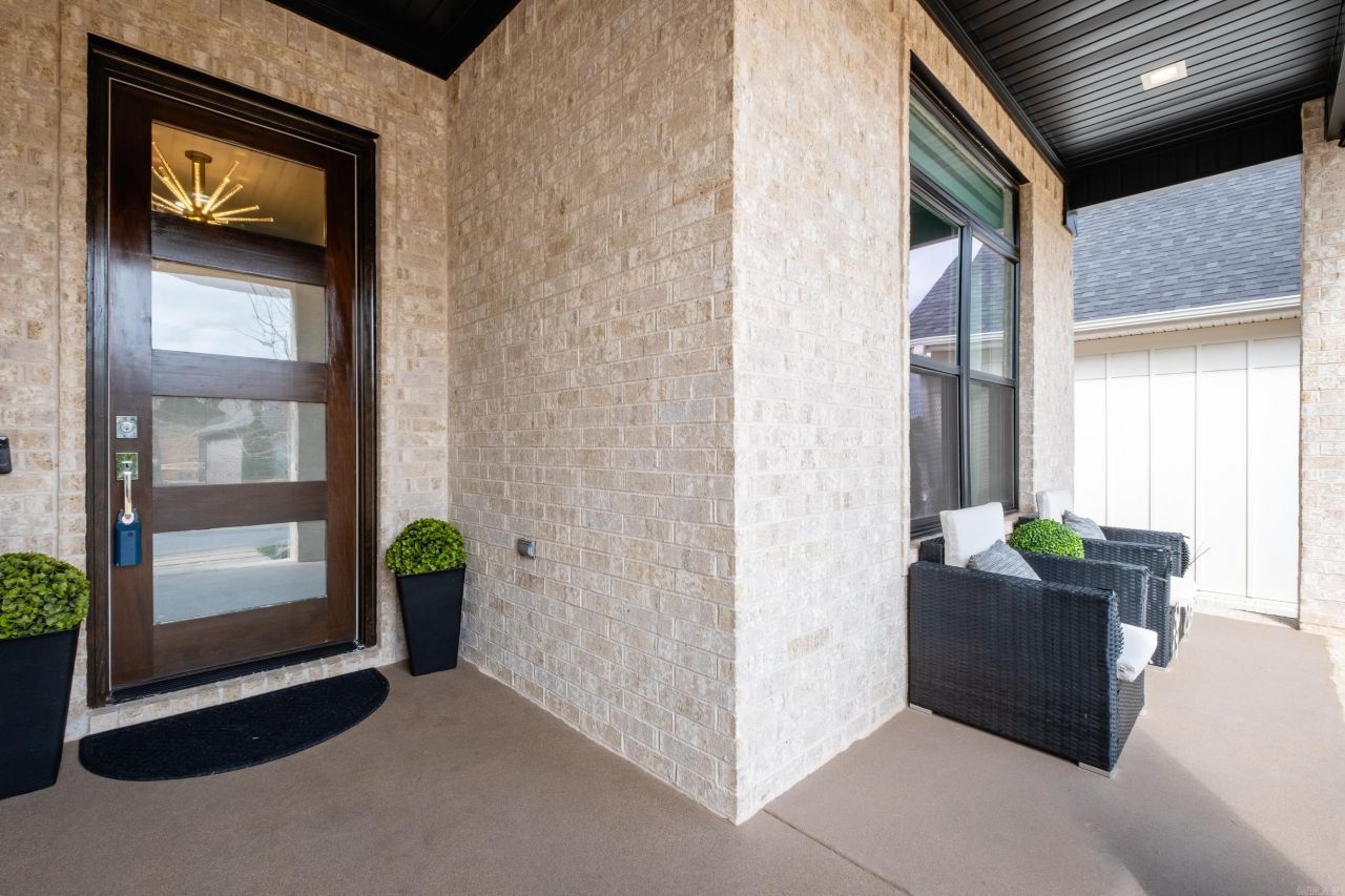 Beautifully designed home with an open floor plan and thoughtful details throughout. A welcoming foyer with decorative lighting and wood look tile flooring leads to a spacious living area with recessed lighting and a dramatic floor to ceiling fireplace wall. The living room flows seamlessly into the dining area and an impressive kitchen designed for both everyday living and entertaining. The kitchen features a large center island with seating, quartz countertops, dark cabinetry with modern hardware, stainless appliances including gas cooktop with vent hood, built in microwave and oven, designer backsplash, large pantry, and stylish pendant lighting. The main level primary suite offers a comfortable retreat with tray ceiling, spacious bath with a beautiful dual sink vanity, soaking tub, oversized glass shower, and a large walk in closet with custom storage. Upstairs are two spacious guest bedrooms with a shared hall bath plus attic access and additional storage. Large windows bring in natural light throughout the living areas and overlook the backyard and patio. Enjoy the covered back patio and fully fenced yard for outdoor relaxing or dining. Possession end of May. Come see!