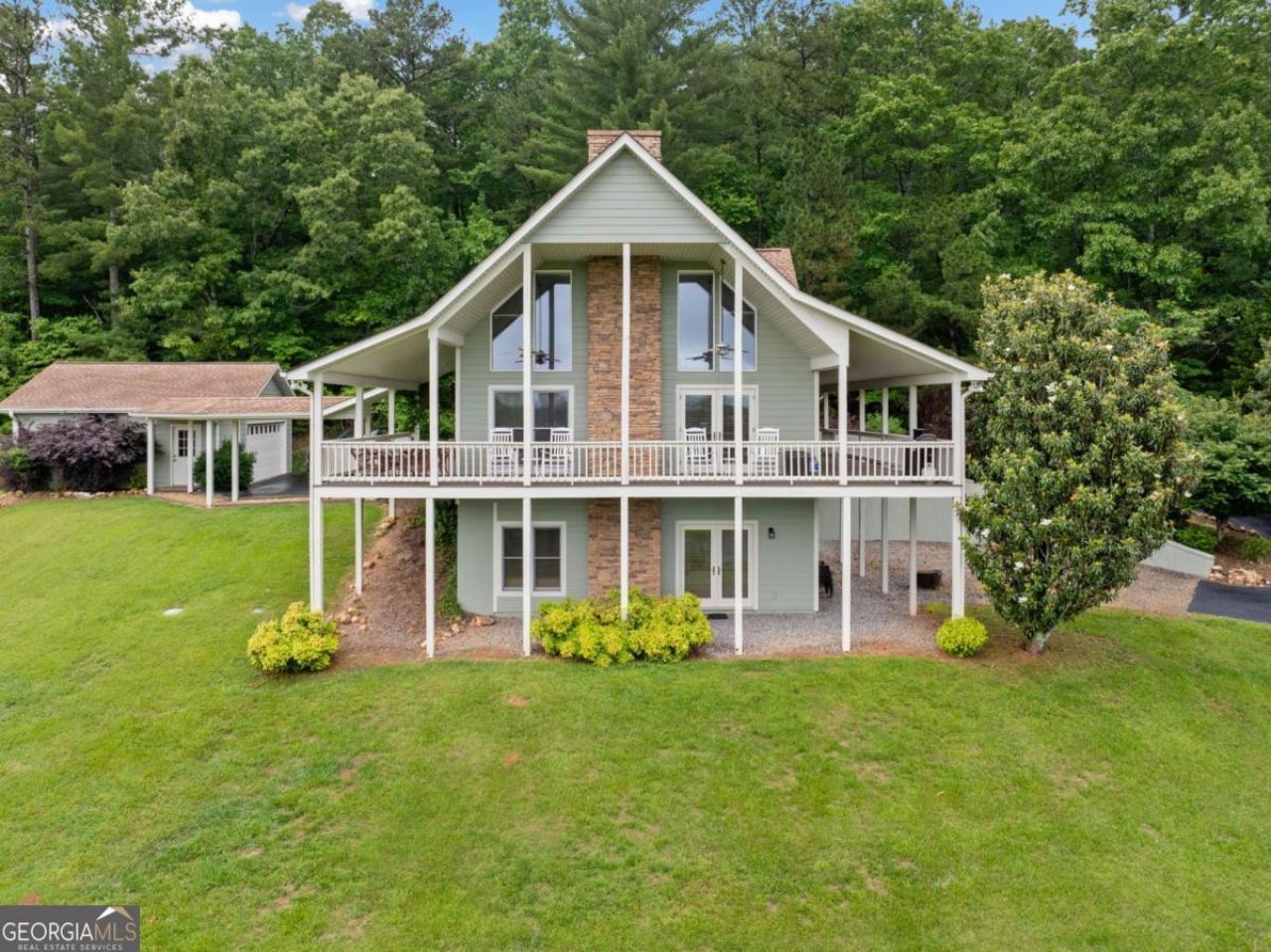 Welcome to your dream getaway in the scenic foothills of the Blue Ridge Mountains! This beautifully updated 4-bedroom, 3-bath mountain cabin offers the perfect blend of rustic charm and modern comfort-ideal as a full-time residence, weekend escape, or turnkey vacation rental. Soaring vaulted ceilings, expansive windows, and an open-concept design flood the home with natural light and frame the unobstructed mountain views that will take your breath away. The spacious great room features a cozy stone fireplace and double French doors leading to a wraparound covered deck-perfect for sipping morning coffee or evening wine while soaking in the scenery. The kitchen is made for entertaining with stainless steel appliances, a generous breakfast island, and plenty of prep space. Recent upgrades include all-new flooring, fresh interior/exterior paint, new bathroom fixtures, a whole-home water filtration system, and a relocated upstairs laundry for added convenience. The fully finished daylight basement offers even more room to spread out, with a newly completed game room, summer kitchen, additional bedroom, and full bath-ideal for hosting guests or creating a private suite. Situated on a gently sloping 1.02-acre lot, there's plenty of space for kids and pets to roam, and the community-stocked pond invites lazy afternoons of fishing or relaxing by the water. A paved driveway, lower parking pad, and detached 2-car garage provide ample room for parking and all your outdoor gear. Additional perks include being fully furnished and move-in ready, pet-friendly, located just minutes from Downtown Blue Ridge, and offering a strong vacation rental history for those seeking an income-producing property. Whether you're looking for a peaceful mountain escape or a smart investment property, this one checks all the boxes.