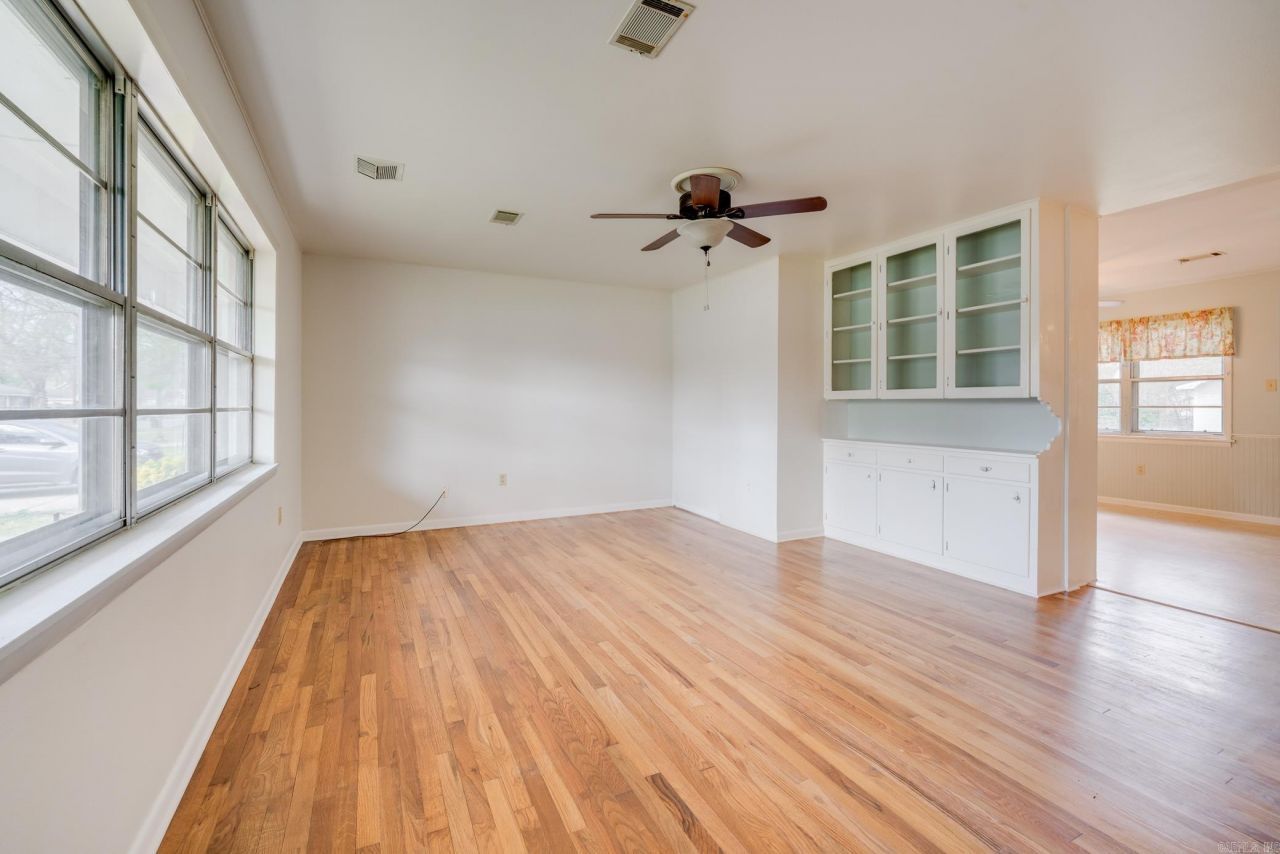Wonderful 3 bed, 3 bath 1950s brick home in the heart of downtown Conway. The inviting front porch opens to a bright, spacious living area that flows into the kitchen and dining space. The kitchen retains some original features and offers a great opportunity for updates and personalization. All bedrooms are generously sized with nice closet space, and two of the three bathrooms have been updated. Beautiful original hardwood flooring remain in much of the house. An additional living/den area with fireplace provides flexible space and leads to the large sunroom and backyard. The fully fenced backyard is a standout feature with walking paths, a shop, storage area and charming garden spots ready to be refreshed and enjoyed. Located just blocks from shopping and dining, this home offers convenience and character in a prime downtown location.