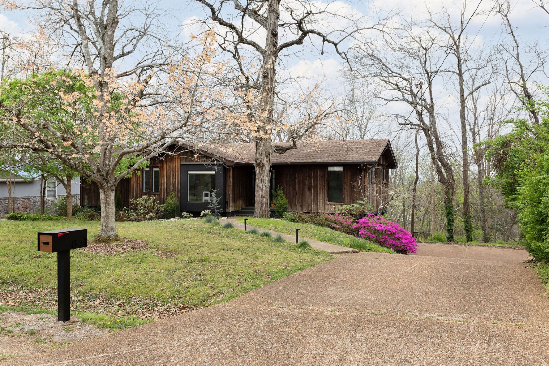 Thoughtfully designed by of one of Nashville's most sought-after designers, every detail of this home reflects a refined, cohesive vision that is rarely found in the market.This architecturally striking home blends modern design with warm, organic elements to create a truly one-of-a-kind living experience. Flooded with natural light, the vaulted living space showcases a dramatic wall of windows, custom wood detailing, and a statement fireplace that anchors the room.The kitchen features clean-lined cabinetry and a sculptural island, while curated finishes like white oak flooring and custom slat accents add depth and texture throughout. Every space has been thoughtfully designed to feel both elevated and livable.Tucked into a private, wooded setting, the home offers a seamless connection to the outdoors-creating a peaceful, retreat-like atmosphere just minutes from everyday conveniences.Home has been pre-inspected and the report can be provided upon request. Radon remediation has been installed and sellers have a termite bond.