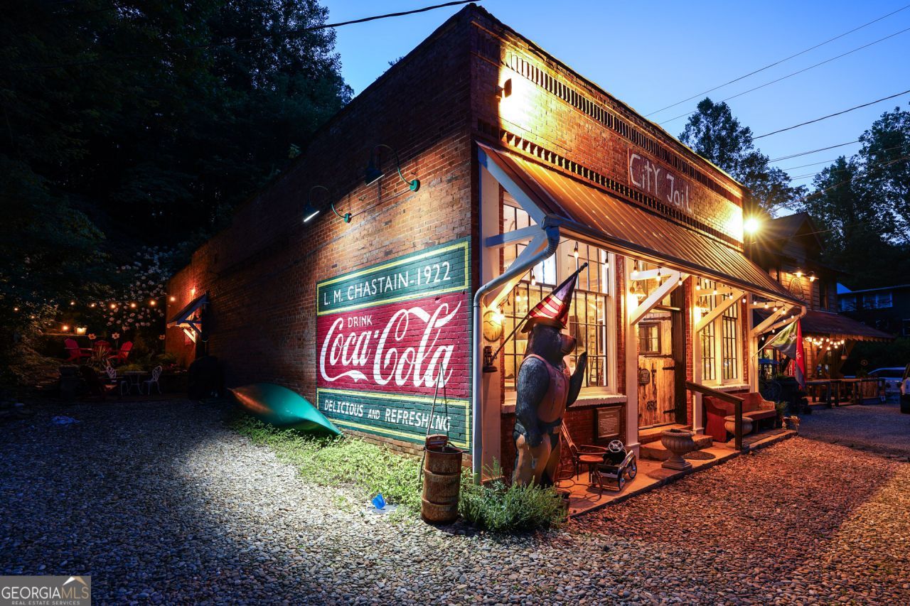 Spend the night in the City Jail with seven of your best friends! Industrial loft with contemporary touches meets historical charm in the heart of historic downtown Lakemont. This beautifully renovated 1922 old brick building, has 1,800 square feet and offers an exceptional blend of vintage character and contemporary comfort. Imagine owning a piece of local history, situated within ear-shot of tranquil Tiger Creek and steps away from charming shoppes and structures of yesteryear, including the iconic The Old Store at Lakemont (Alley's). This versatile property is zoned Vacation Cottage, making it ideal for use as a Short Term Rental (STR) on platforms like VRBO or Airbnb, or as perfect overflow space for your nearby lake home. Furthermore, it presents exciting potential for commercial or retail space, given its prime location. Please note, the septic permit for this property is for 3 bedrooms. Step inside to an exquisite interior, fully renovated in 2023, featuring bold surfaces, impressive light fixtures, new appliances, contemporary bioethanol fireplace and a brand-new HVAC system for year-round comfort. The home boasts stunning concrete floors throughout and a beautiful multi-pane window package at the front and back that floods the space with natural light. The open-concept living area is truly a showstopper, with its 12 foot ceiling. This versatile property offers comfortable accommodation for up to 8 guests. A charming outdoor patio, nestled in its own alcove to the side of the building, extends your living space, ideal for relaxing or entertaining. The front entry features a distinctive heavy 'Dutch door'. A classic 'Coca Cola' sign, painted directly on the brick exterior, further seals its historic significance. Location is everything, and this property delivers. You're just minutes from the vibrant Lake Rabun marina known as Hall's Boat House, aka Rabun Boat House, the historic Lake Rabun Hotel, and the renowned Max's Restaurant. Outdoor enthusiasts will delight in the close proximity to Tallulah Gorge State Park, offering hiking, running, biking, and swimming along the Short Line Trail, as well as access to Tallulah Lake. For more dining and shopping experiences, the charming downtown of Clayton is just a 10-minute drive away, renowned for its amazing shoppes and restaurants on Main Street. This meticulously updated historic gem offers an unparalleled lifestyle in the North Georgia Mountains. Don't miss your chance to own a piece of Lakemont's vibrant history!