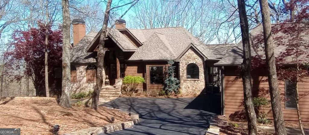 This stately home is located within the gated community of Big Canoe, and boasts exceptional curb appeal, a circular driveway, and two-car garage. The dramatic entrance is enhanced by 8-foot mahogany doors that are flanked by stone columns. The doors open into an extraordinary foyer which offers entrance into generous space with soaring ceilings and spectacular long-range mountain views that are softened by a lush canopy of trees and breathtaking morning sunrises. The living room features a fireplace, deck access, with easy flow into the inviting dining room. It has open concept access to the newly totally renovated upscale kitchen, which is the heart of the home and has all new appliances, an 11-foot island, and an adjacent cozy keeping room with stone fireplace, deck access and an all-seasons porch. The main level lavish master suite highlights a luxurious master bath with an 11-foot by 4-foot zero entry shower with high-end rain head shower heads, and an exceptional custom closet. The master has access to the second-floor deck. The home features four bedrooms, three full bathrooms and two half baths, all of which have been fully renovated. The terrace level has 9-foot plus ceilings, a newly renovated second master with en-suite bath, and walk-in closet, two large guest bedrooms, that share a Jack and Jill bath, both with deck access. Also, a newly renovated flex room with expansive mountain views, features a fireplace, deck access, and an en-suite half-bath, and could easily be used as a game room or fifth bedroom. This level offers enormous interior storage. The upper deck offers 1500 square-foot plus of outdoor entertaining space. The terrace level deck is accessed by all bedrooms and offers relaxing space with beautiful tranquil views. It is five minutes away from the amenities and near the north gate. The roof is three years old. This home boasts numerous sought after improvements that more expensive homes in the area would love to have, it will not last long at this price.
