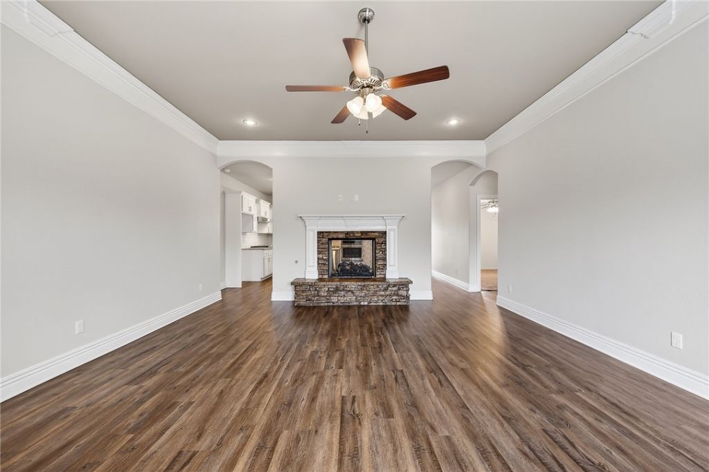 Welcome to a home that blends comfort, character, and thoughtful design in all the right ways. From the moment you step inside, you're greeted by a show-stopping two-sided fireplace that connects the living room, kitchen, and dining area?perfect for cozy nights or effortless entertaining.The kitchen shines with white cabinetry, granite countertops, and sleek stainless appliances?ready for everyday living or hosting friends.The primary suite feels like a retreat, featuring a spa-like bath with a tiled walk-in shower, jetted tub, and a smart walk-in closet that connects directly to the laundry room. A rare 2.5-car garage offers 121.5 sq ft of extra space for storage, hobbies, or a workshop. Finishing touches like new paint, crown molding, cedar trim, an insulated garage door, plus gutters, sod, and fencing make this home move-in ready. Stylish. Functional. Easy to love. Call today to schedule your viewing!