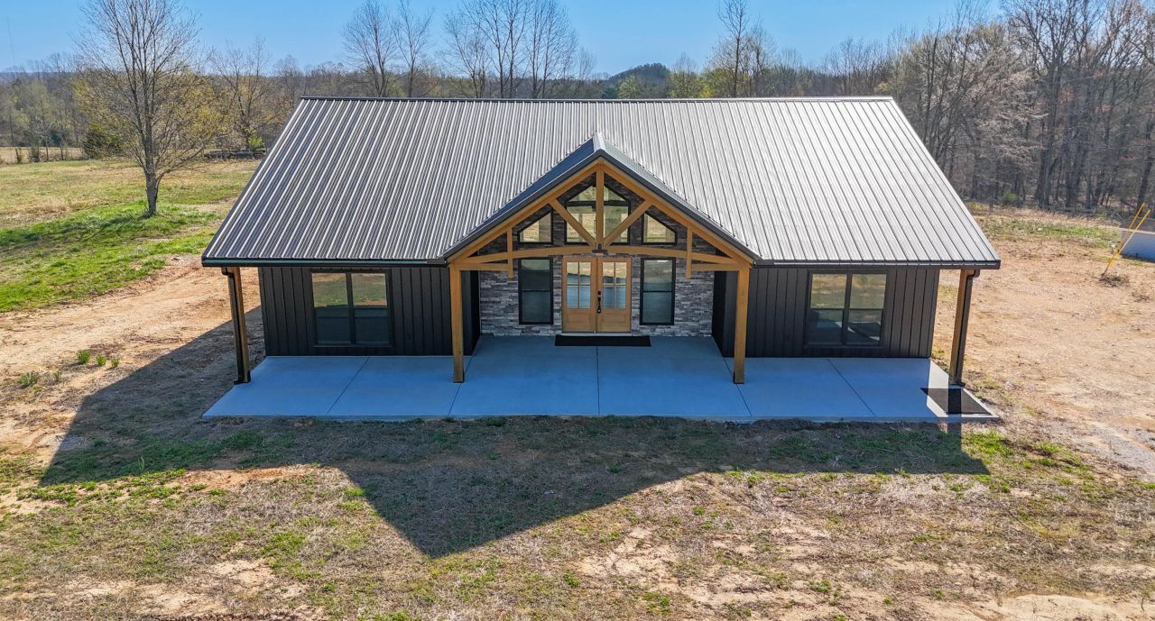 Welcome to your private retreat where modern finishes meet wide open space. A beautiful covered front patio sets the tone for this brand new custom-built home, showcasing warm wood beams, a tongue-and-groove ceiling, and a striking stone exterior. Large, custom geometric windows above the front entry flood the space with natural light and create a bold architectural focal point. Situated on 20.63 fully fenced and cross-fenced acres, it offers the perfect blend of comfort, functionality, and opportunity.Step inside where the living room greets you with a cozy fireplace and flows seamlessly into the kitchen, creating an open concept space ideal for both everyday living and entertaining. The kitchen is thoughtfully designed with a center island and quartz countertops, offering both function and style. The home includes 3 bedrooms and 2 full bathrooms, including a spacious primary suite with a tiled shower and soaking tub, built-in closet storage, and finishes that create a true retreat at the end of the day. A laundry room with a utility sink adds everyday convenience, while modern finishes with black accents carry throughout the home.Enjoy additional outdoor living from the covered back patio, overlooking your expansive acreage. Tucked privately at the back of the property, a 1700+ sq ft doublewide offers incredible flexibility, ideal for rental income, in-law living, a teenager's space, or even a farmhand residence. The land is already set up for a small farm with a large chicken coop, barn/shed, and plenty of room to expand. With the entire property fenced and cross-fenced, it's ready for animals, recreation, or simply enjoying your own private escape.Conveniently positioned with access to major routes, you're within reach of Nashville, Florence, Columbia, Lawrenceburg, and more with nearby access to the Natchez Trace Parkway for scenic drives and outdoor recreation. Easy connectivity to Highway 43 and surrounding state routes makes travel simple.