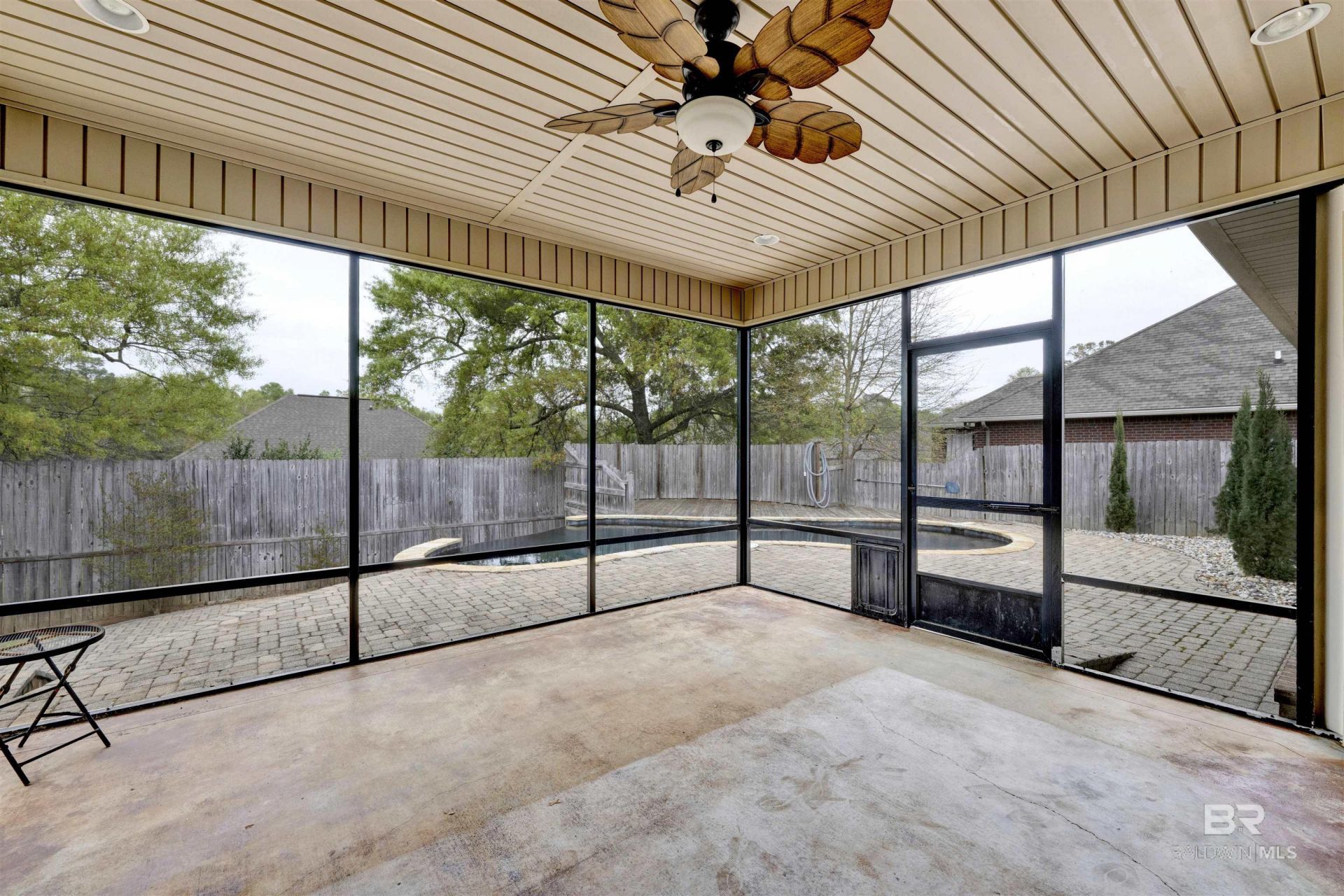 Welcome to this custom-built Mediterranean Revival-style home in Mobile, offering thoughtfully designed living spaces and exceptional outdoor features. This three-bedroom, two-bath residence showcases distinctive architectural details, including arched doorways and windows, a durable 50-year metal roof designed to resemble terracotta tiles, and a flowing open floor plan. Inside, you'll find engineered hardwood flooring, high ceilings, and elegant archways that enhance the home's spacious feel. A dedicated study with pocket French doors is located just off the primary suite, providing a flexible space for work or hobbies. The primary suite also features a recessed ceiling, a jetted tub, separate glass-enclosed shower, double vanity, and a generously sized walk-in closet with ample storage. The kitchen is equipped with granite countertops, stainless steel appliances, a gas cooktop, and abundant cabinetry and pantry space. The living area includes a gas fireplace with a detailed mantle, creating a comfortable central gathering space. Outdoor living is a highlight of this property! It features a screened porch with an area for an outdoor kitchen, overlooking a VANISHING-EDGE SALTWATER GUNITE POOL that's surrounded by an expansive deck and multi-level paver hardscape. The corner lot includes a circular concrete driveway for added convenience. Additional features include crown molding, recessed ceilings in select rooms, and a climate-controlled garage with bay windows. Schedule your private showing to experience all this property has to offer! Buyer to verify all information during due diligence.