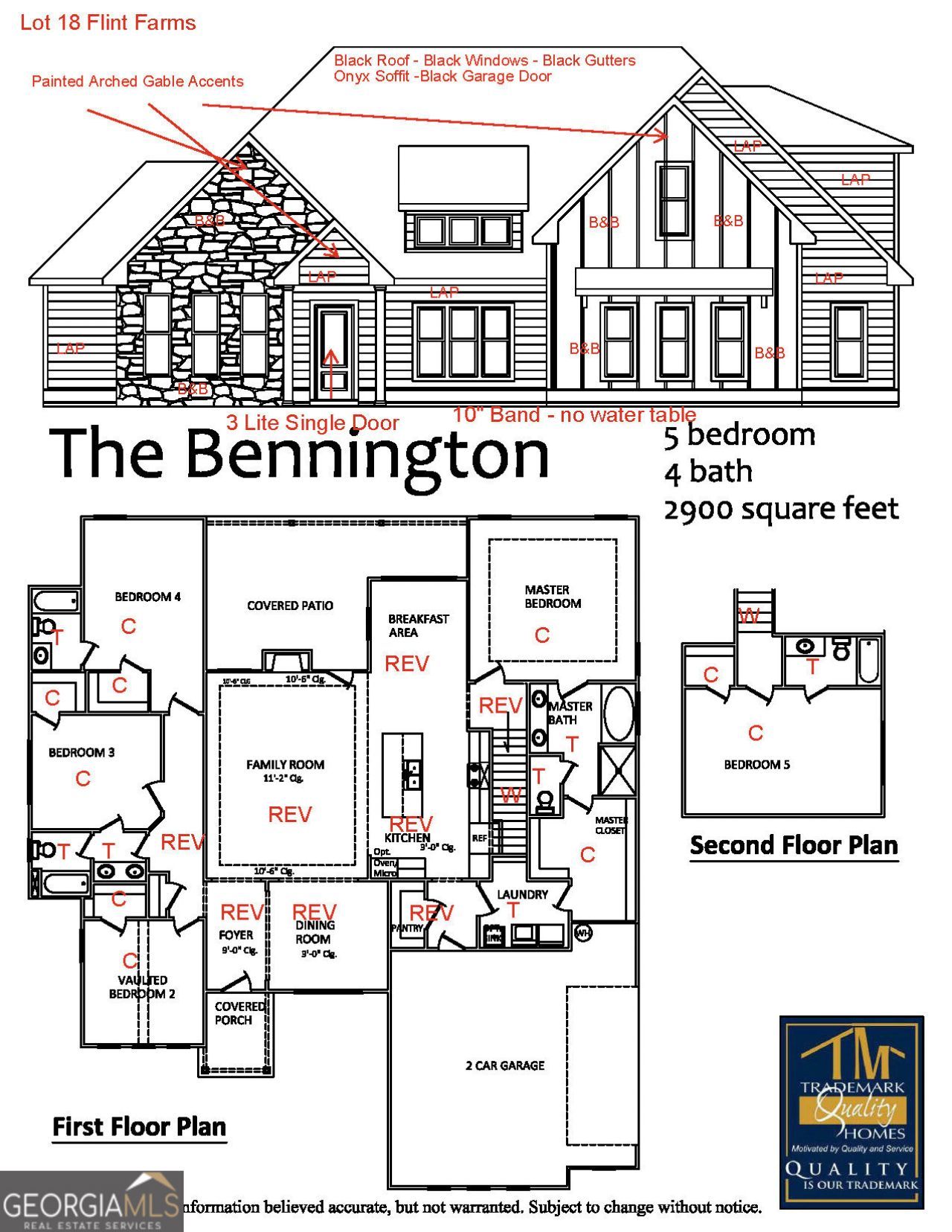 New Construction | Pike County | Flint Farms | 5BR/4BA | Split Bedroom Plan | Smart Home | Covered Patio The Bennington by Trademark Quality Homes - new construction home under construction in desirable Flint Farms in Pike County. This 5 bedroom, 4 bath home features a split-bedroom floor plan, open concept living, and designer finishes throughout. Primary suite on main with tray ceiling, spa-style bath, tiled shower, and freestanding soaking tub. Gourmet kitchen with large island, quartz countertops, pendant lighting, breakfast area, and separate formal dining room. Family room with stone fireplace and views of private wooded lot. Exterior features include covered back patio, cement board siding, architectural shingles, Low-E energy-efficient windows, and spray foam insulation in attic. Attached 2-car garage. Smart home features include keyless entry, smart switches, and video doorbell. Located in Pike County with private, wooded surroundings. Builder requires 2% construction deposit. Incentives available: $2,500 builder credit with preferred lender plus $2,500 lender credit.