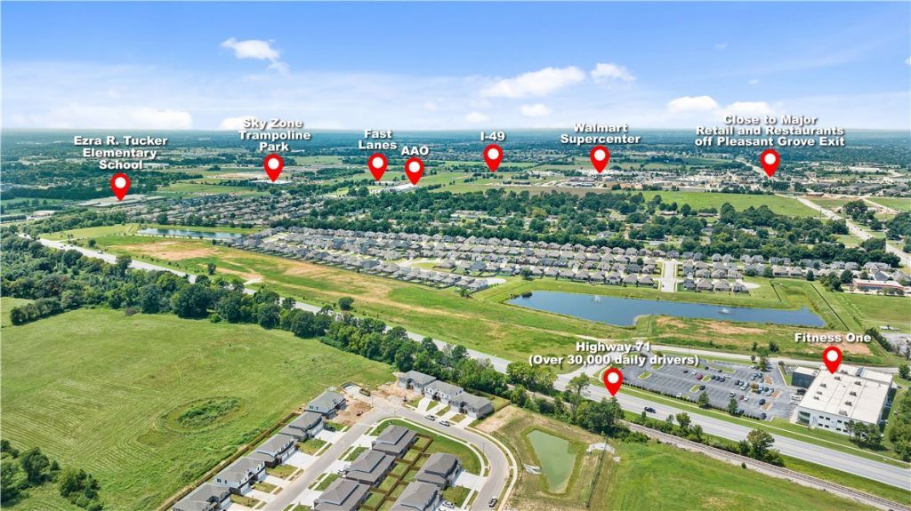 17.87 acres creating a premier development opportunity at Pleasant Grove & 71 B, situated on the Rogers / Lowell border within one of Northwest Arkansas's fastest-growing commercial corridors. The property offers excellent visibility and access, with direct street frontage, utilities available at the property, and established detention already in place; significantly reducing upfront development costs. A fully entitled and approved multifamily LSD conveys with the purchase, including engineered plans for 166 townhome units with amenities. A revised Lowell Zoning Ordinance further enhances project efficiency by allowing utility lines to cross property boundaries and private streets which lowers overall development costs. While the townhome footprints are set, vertical design remains open, giving flexibility for the purchaser's vision. The project structure also supports a mix of fee simple and rental units, providing a unique opportunity to create immediate sales-driven cash flow or portfolio value through rentals.