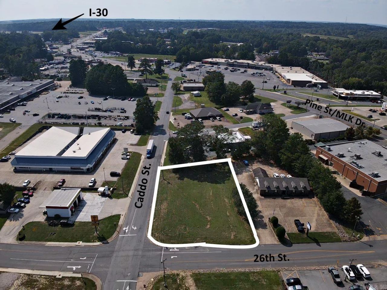 Highly visible commercial lot with street frontage on Caddo and 26th Streets. Nice corner lot with 6,700 daily traffic count. Utilities easily available. Bring your commercial plans and call today!