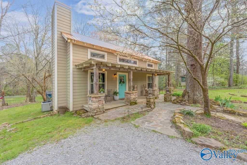 Charming Mentone cottage just steps from Mentone Brow Park! This 2 bedroom, 2 bath beauty features reclaimed warm wood interiors, updated finished, and a tile walk-in master shower. Cozy up by the wood-burning fireplace or enjoy the peaceful, tree-filled yard with blooming dogwoods. Situated on two lots, this property offers space, privacy, and investment potential. Eye-catching copper penny metal roof adds timeless character. Proven rental history makes this an ideal getaway or income-producing property. Come fall in love with the DOGWOOD HOUSE! Offered at $289,000.
