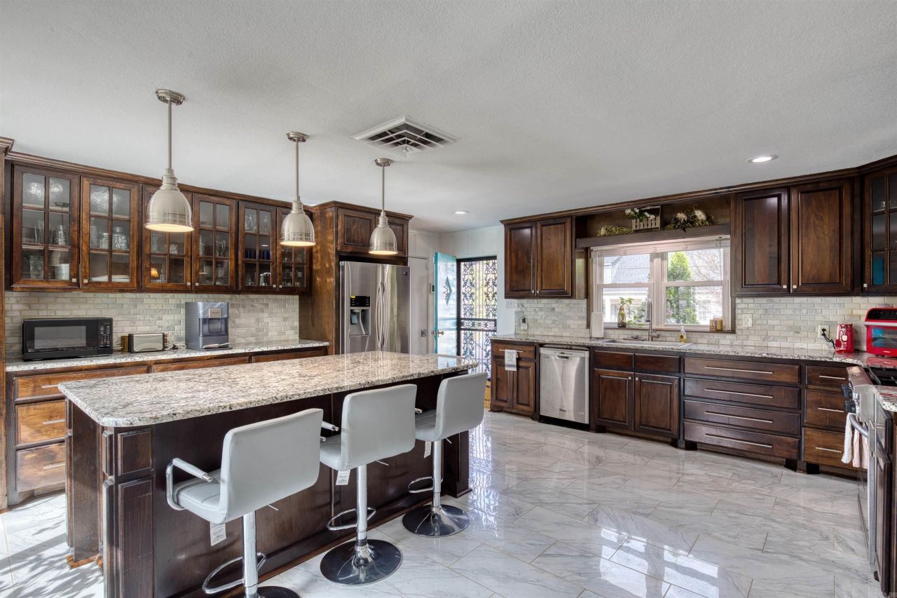 This home offers everything a family that loves to entertain needs. The kitchen is a Chef's dream. Large Living Room, Dining Room, and Den with a coffee bar w/ a cooktop and fireplace. Four spacious bedrooms on one level. All bathrooms updated. The in-law suite is perfect for Mom, teens, an income suite, or an office. The spacious fenced back yard has a covered patio and air conditioned workshop. Large concrete slab for the outdoor kitchen. Must see this ONE. OPEN HOUSE SUNDAY 2:00 to 4:00 March 22.
